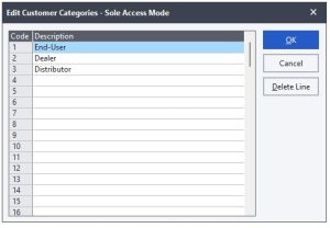 This is how you create customer categories. We’ve covered sales analysis codes and customer categories, and next, we’ll move on to creating customer accounts.