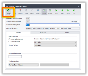 5. You will be taken to the Edit General Ledger Accounts window.