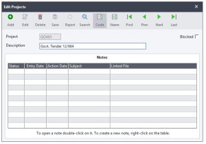 - Project Code: Enter a unique code for the cost centre or revenue centre.