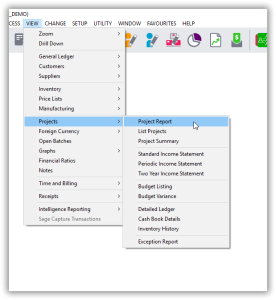 - Select Reports and choose the the project report you need (e.g., Income Statement, Expense Report).